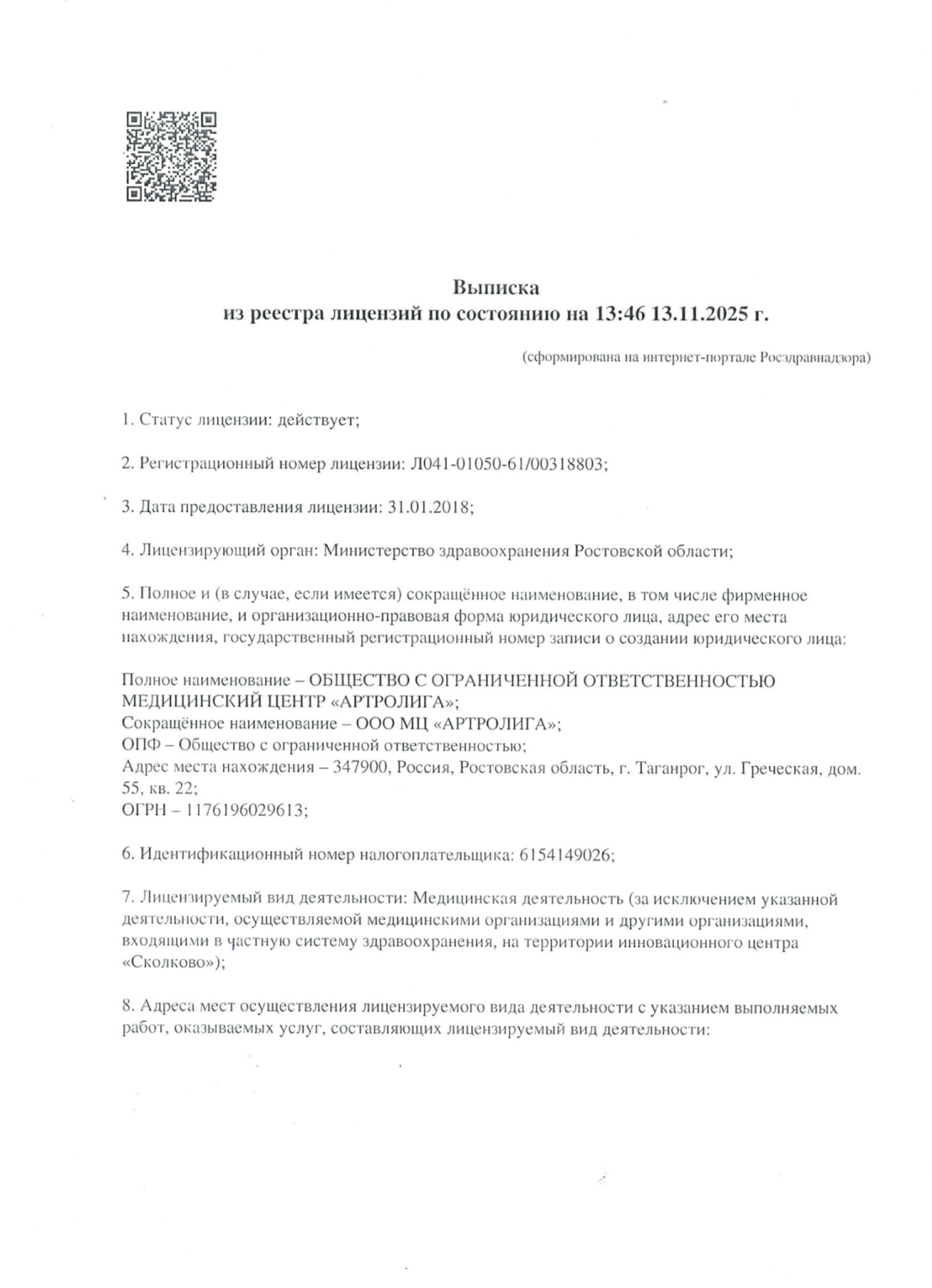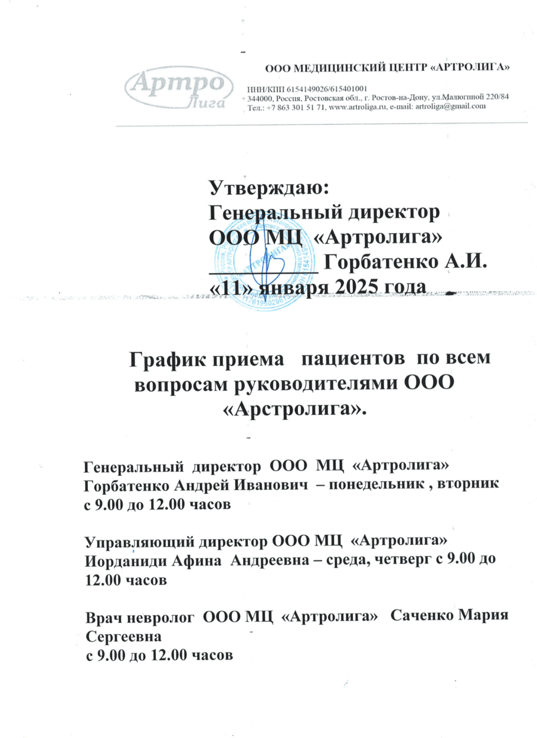 - Правила внутреннего распорядка для пациентов ООО МЦ Артролига